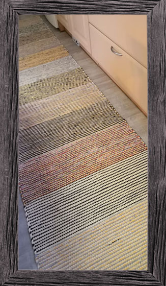 Kelta-harmaa räsymatto keittiöön. Kalalankaan kudottu.
